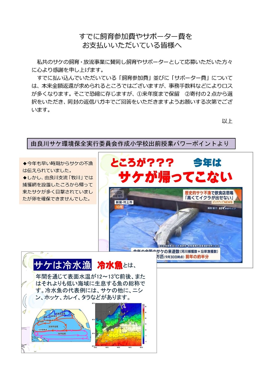 サケの稚魚飼育者の皆さんへ |