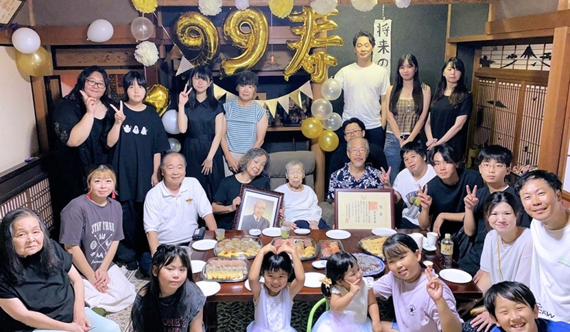 | 子、孫、ひ孫、その関係者で 母・保子「白寿99歳」のお祝いをしました | |