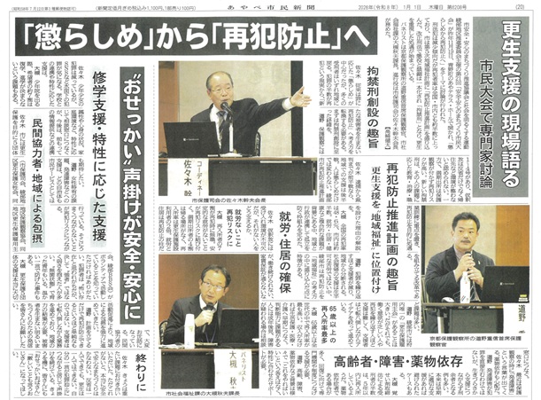 | 地元紙で2026年1月1日正月号で「再犯防止推進計画」の講演を特集していただきました。 | |